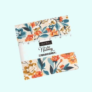 Nutmeg Charm Pack – 40 x 5″ Squares. Purchase a plain pack of Bella Solids in White to make an easy Half Square Triangle Quilt.