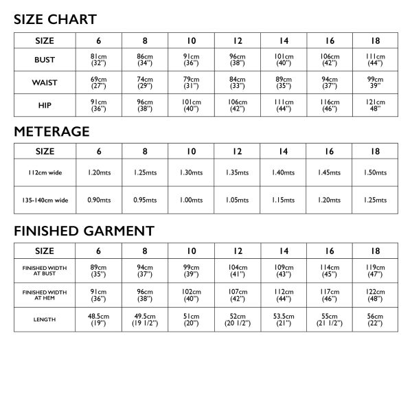 Sizes 6 – 18